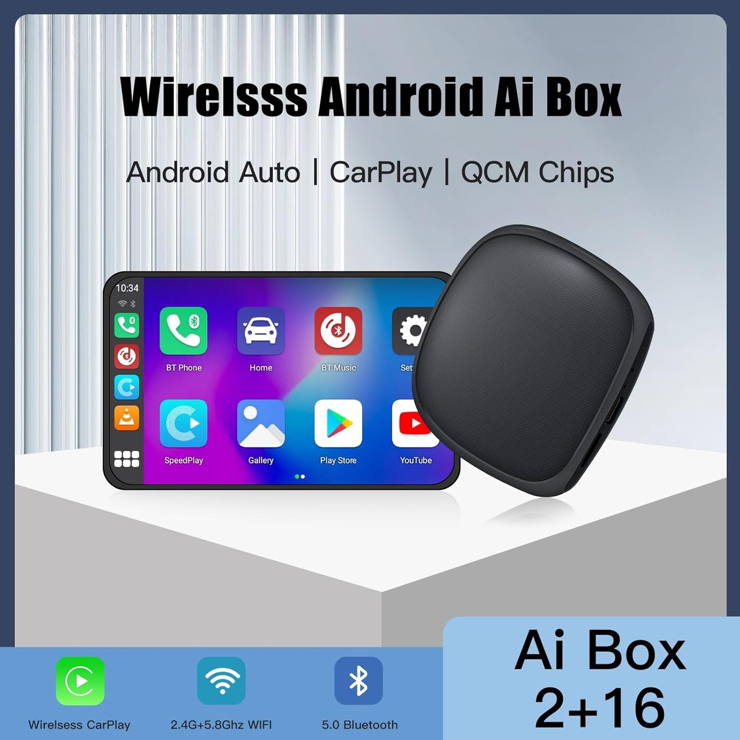 - Qualcomm QCM2290 chip:The Ai Box has chosen the Qualcomm 8-core high-speed chip (QCM2290) for a 200% performance improvement.Provide seamless USB plug and play functionality, pairing in just 30 seconds for instant connectivity.and supports up to 128GB TF card output.